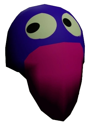 Outside, the item appears as a low-quality depiction of a bird, with a blue-like color for the head, and a pink-colored beak. Two simple eyes can also be seen, and is positioned to be looking towards the left.