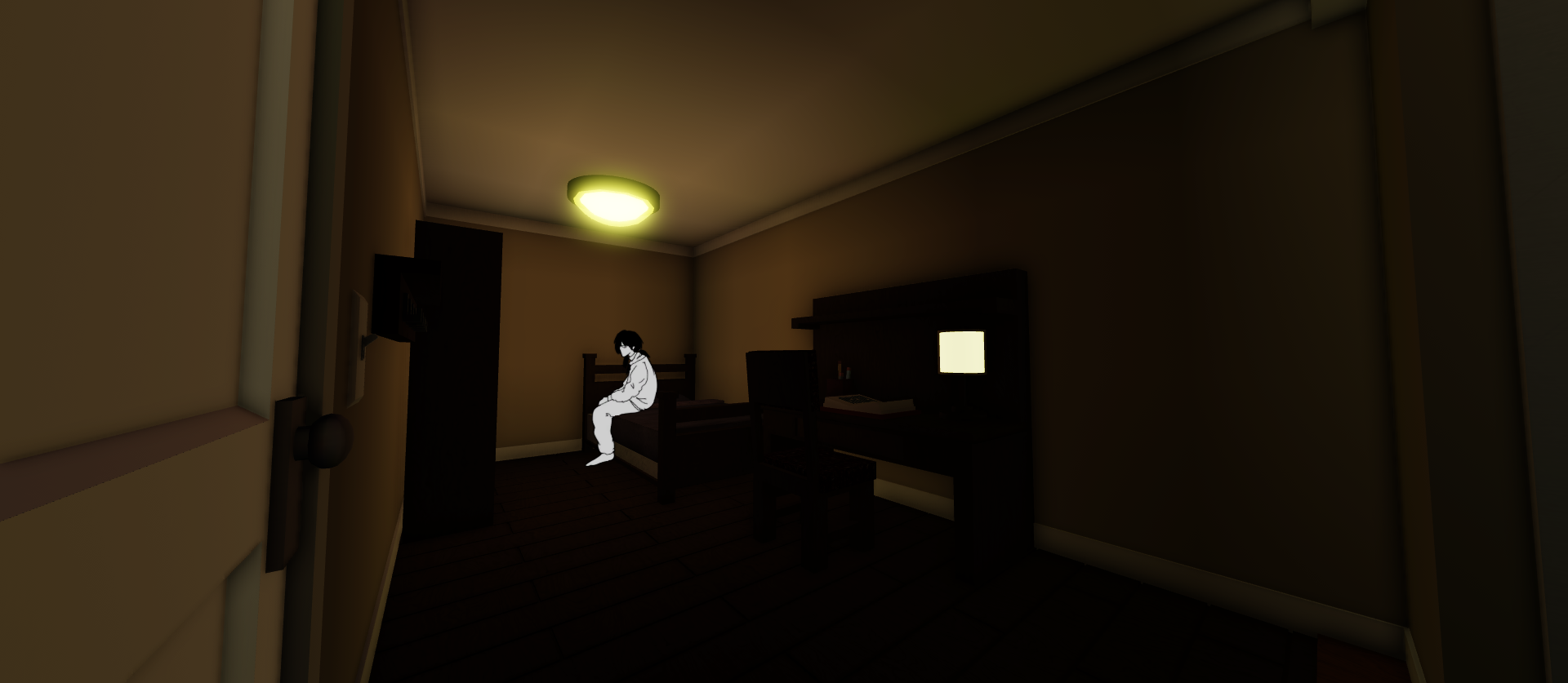 This floor appears as Anatsuki's room from DREAM WORLD. There is a bed where Anatsuki can be seen sitting on. Players can explore the room but cannot interact with the objects that are in it.
