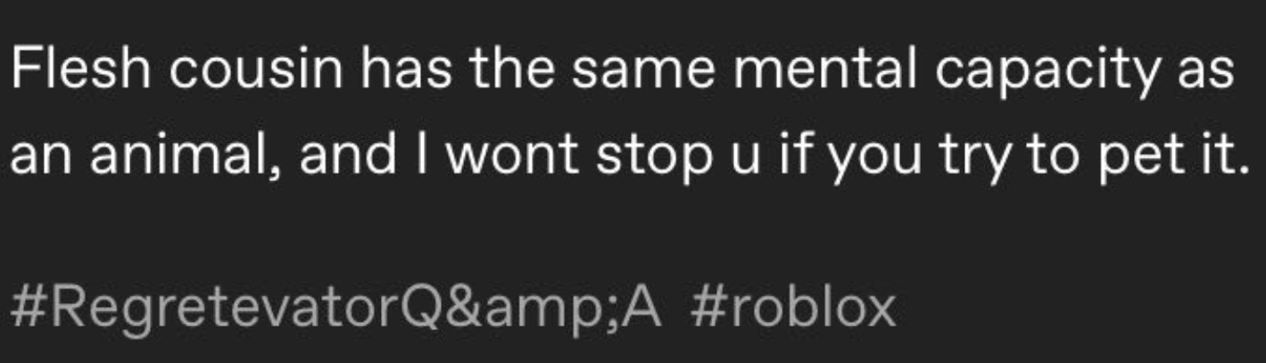 Yeucc has also stated that Flesh cousin is not fully sentient, its sentience comparable to one of a "parrot mixed with a fish". [8]