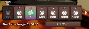 Rewards system | Read further: Daily Challenge The player is greeted by Zach, in which the NPC will say that it's time for the player to see what their daily challenge is. After that, they are tasked with doing a random quest. Daily challenges are a way for players to earn coins, floor tickets or Stickers. If the player completes the challenge, there will be an option for the player to claim the reward. The numbers in the daily challenges can vary, including: