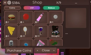 Currency purchase menu | Before the addition of this menu, players were only able to purchase 50 coins, or more during the weekends. |