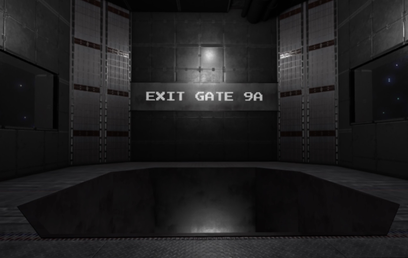 The floor is seemingly set in space or at night, with stars being visible outside of the windows. The room appears as a facility-like structure, with grey and black being a prominent color. Several lights are placed around the starting area, the dropper, and the winner's area.
